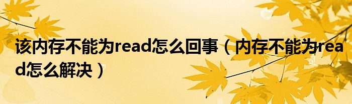 大家好,来宝来为大家解答以下问题,该内存不能为read怎么回事,内存不能为read怎么解决很多人还不知道,今天让我们一起来看看吧!