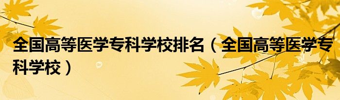 关于全国高等医学专科学校排名,全国高等医学专科学校这个很多人还不知道,今天菲菲来为大家解答以上的问题,现在让我们一起来看看吧!