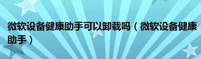 大家好,来宝来为大家解答以下问题,微软设备健康助手可以卸载吗,微软设备健康助手很多人还不知道,今天让我们一起来看看吧!