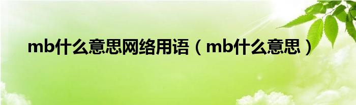大家好,来宝来为大家解答以下问题,mb什么意思网络用语,mb什么意思很多人还不知道,今天让我们一起来看看吧!