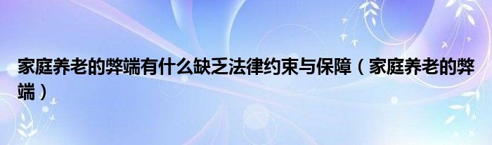 关于家庭养老的弊端有什么缺乏法律约束与保障,家庭养老的弊端这个很多人还不知道,今天菲菲来为大家解答以上的问题,现在让我们一起来看看吧!