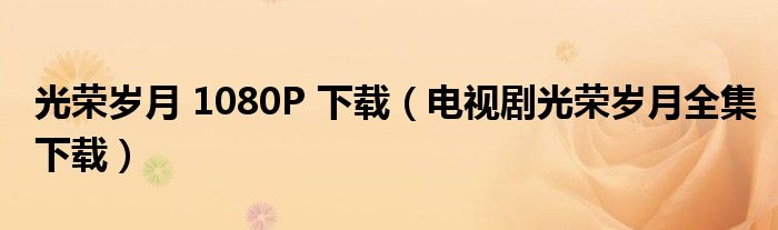 关于光荣岁月 1080P 下载,电视剧光荣岁月全集下载这个很多人还不知道,今天菲菲来为大家解答以上的问题,现在让我们一起来看看吧!