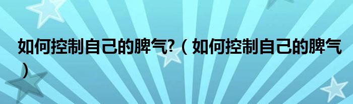 大家好,小晋来为大家解答以下问题,关于如何控制自己的脾气?,如何控制自己的脾气很多人还不知道,今天让我们一起来看看吧!
