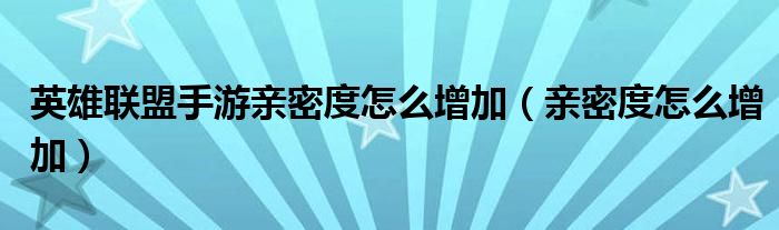 英雄联盟手游亲密度怎么增加(亲密度怎么增加)