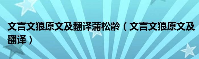 文言文狼原文及翻译蒲松龄(文言文狼原文及翻译)