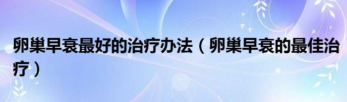 关于卵巢早衰最好的治疗办法,卵巢早衰的最佳治疗这个很多人还不知道,今天菲菲来为大家解答以上的问题,现在让我们一起来看看吧!