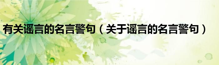 关于有关谣言的名言警句,关于谣言的名言警句这个很多人还不知道,今天菲菲来为大家解答以上的问题,现在让我们一起来看看吧!
