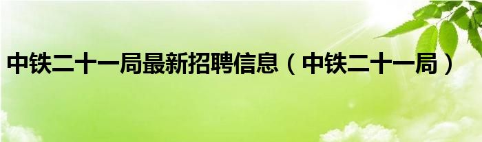 关于中铁二十一局最新招聘信息,中铁二十一局这个很多人还不知道,今天菲菲来为大家解答以上的问题,现在让我们一起来看看吧!