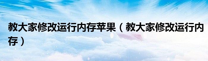 大家好,小晋来为大家解答以下问题,关于教大家修改运行内存苹果,教大家修改运行内存很多人还不知道,今天让我们一起来看看吧!