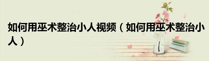 关于如何用巫术整治小人视频,如何用巫术整治小人这个很多人还不知道,今天菲菲来为大家解答以上的问题,现在让我们一起来看看吧!