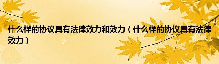 关于什么样的协议具有法律效力和效力,什么样的协议具有法律效力这个很多人还不知道,今天菲菲来为大家解答以上的问题,现在让我们一起来看看吧!