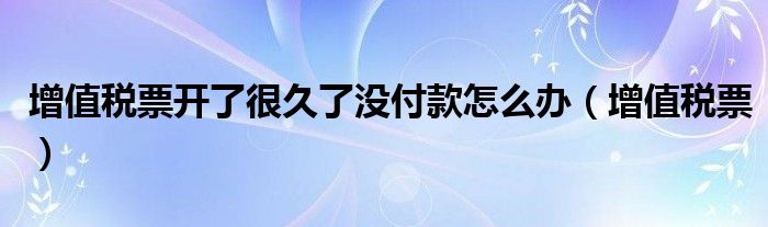关于增值税票开了很久了没付款怎么办,增值税票这个很多人还不知道,今天菲菲来为大家解答以上的问题,现在让我们一起来看看吧!