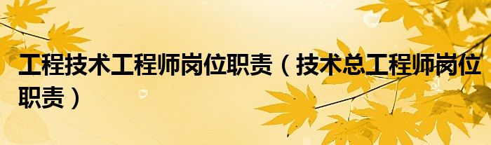 关于工程技术工程师岗位职责,技术总工程师岗位职责这个很多人还不知道,今天菲菲来为大家解答以上的问题,现在让我们一起来看看吧!