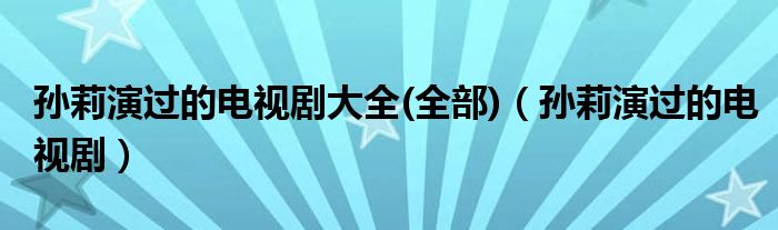 关于孙莉演过的电视剧大全(全部),孙莉演过的电视剧这个很多人还不知道,今天菲菲来为大家解答以上的问题,现在让我们一起来看看吧!