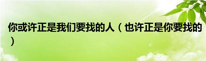 关于你或许正是我们要找的人,也许正是你要找的这个很多人还不知道,今天菲菲来为大家解答以上的问题,现在让我们一起来看看吧!
