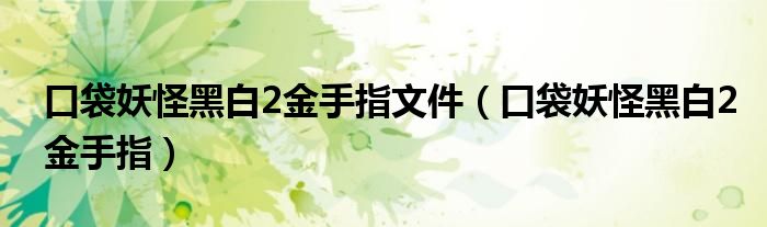 大家好,小飞来为大家解答以上问题,口袋妖怪黑白2金手指文件,口袋妖怪黑白2金手指很多人还不知道,现在让我们一起来看看吧!
