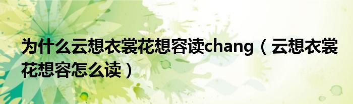 关于为什么云想衣裳花想容读chang,云想衣裳花想容怎么读这个很多人还不知道,今天菲菲来为大家解答以上的问题,现在让我们一起来看看吧!