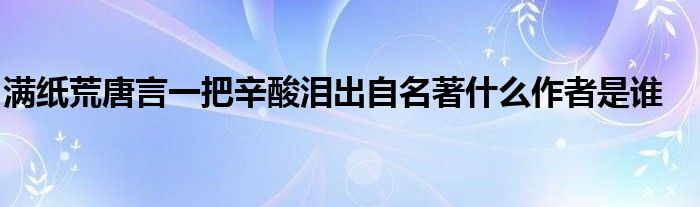 满纸荒唐言一把辛酸泪出自名著什么作者是谁