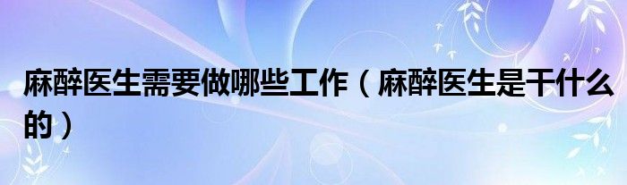 关于麻醉医生需要做哪些工作,麻醉医生是干什么的这个很多人还不知道,今天菲菲来为大家解答以上的问题,现在让我们一起来看看吧!
