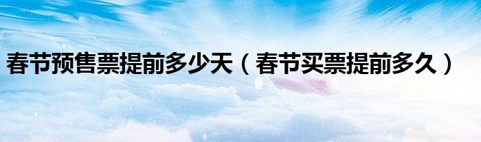关于春节预售票提前多少天,春节买票提前多久这个很多人还不知道,今天菲菲来为大家解答以上的问题,现在让我们一起来看看吧!