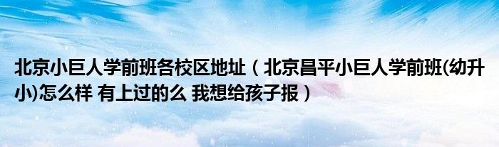 北京小巨人学前班各校区地址(北京昌平小巨人学前班(幼升小)怎么样 有上过的么 我想给孩子报)