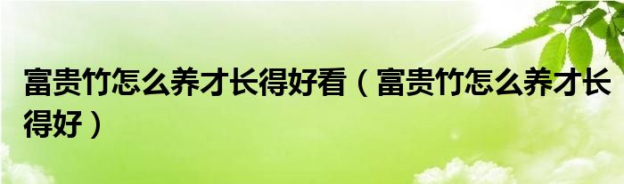 富贵竹怎么养才长得好看(富贵竹怎么养才长得好)