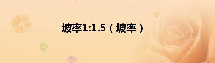 关于坡率1:1.5,坡率这个很多人还不知道,今天菲菲来为大家解答以上的问题,现在让我们一起来看看吧!