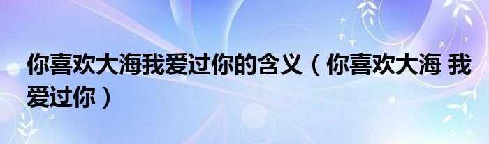 大家好,小飞来为大家解答以上问题,你喜欢大海我爱过你的含义,你喜欢大海 我爱过你很多人还不知道,现在让我们一起来看看吧!