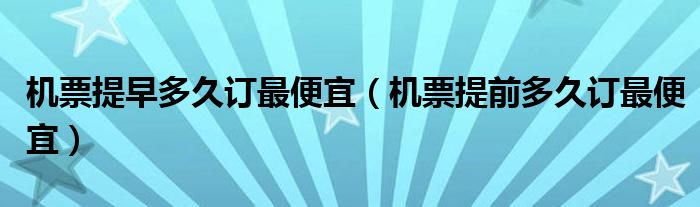机票提早多久订最便宜(机票提前多久订最便宜)