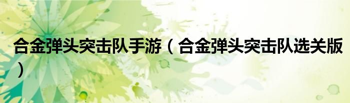 关于合金弹头突击队手游,合金弹头突击队选关版这个很多人还不知道,今天菲菲来为大家解答以上的问题,现在让我们一起来看看吧!