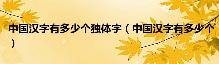 关于中国汉字有多少个独体字,中国汉字有多少个这个很多人还不知道,今天菲菲来为大家解答以上的问题,现在让我们一起来看看吧!
