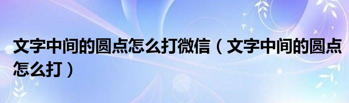 关于文字中间的圆点怎么打微信,文字中间的圆点怎么打这个很多人还不知道,今天菲菲来为大家解答以上的问题,现在让我们一起来看看吧!