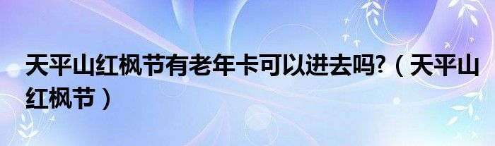 关于天平山红枫节有老年卡可以进去吗?,天平山红枫节这个很多人还不知道,今天菲菲来为大家解答以上的问题,现在让我们一起来看看吧!