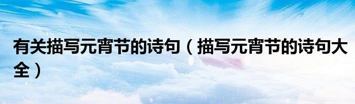 大家好,小晋来为大家解答以下问题,关于有关描写元宵节的诗句,描写元宵节的诗句大全很多人还不知道,今天让我们一起来看看吧!