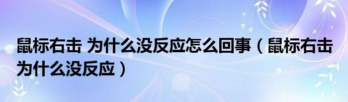 关于鼠标右击 为什么没反应怎么回事,鼠标右击 为什么没反应这个很多人还不知道,今天菲菲来为大家解答以上的问题,现在让我们一起来看看吧!