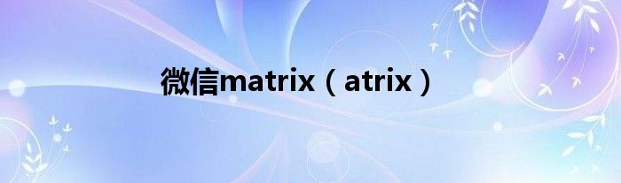大家好,来宝来为大家解答以下问题,微信matrix,atrix很多人还不知道,今天让我们一起来看看吧!