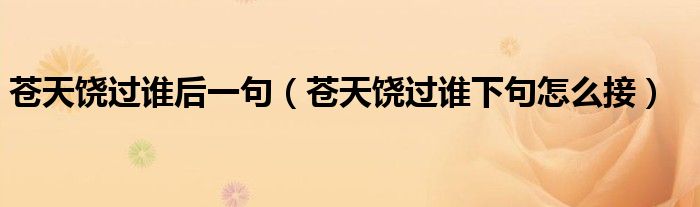 大家好,小晋来为大家解答以下问题,关于苍天饶过谁后一句,苍天饶过谁下句怎么接很多人还不知道,今天让我们一起来看看吧!