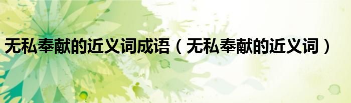 关于无私奉献的近义词成语,无私奉献的近义词这个很多人还不知道,今天菲菲来为大家解答以上的问题,现在让我们一起来看看吧!