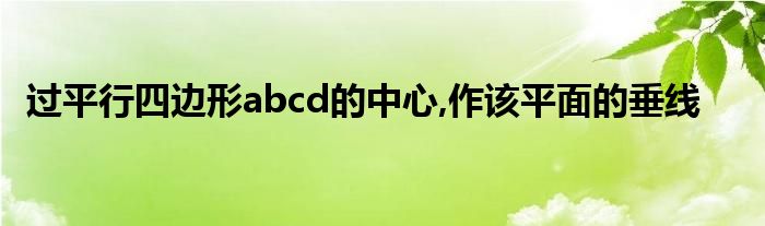 关于过平行四边形abcd的中心,作该平面的垂线这个很多人还不知道,今天菲菲来为大家解答以上的问题,现在让我们一起来看看吧!