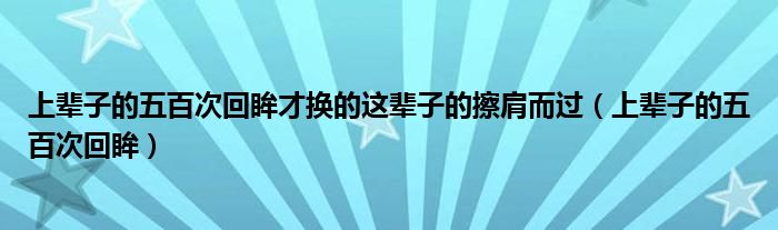 上辈子的五百次回眸才换的这辈子的擦肩而过(上辈子的五百次回眸)