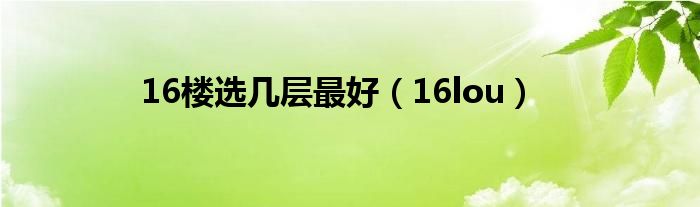 16楼选几层最好,16lou这个很多人还不知道,小飞来为大家解答以上的问题。现在让我们一起来看看吧!