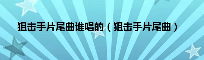 大家好,小飞来为大家解答以上的问题。狙击手片尾曲谁唱的,狙击手片尾曲这个很多人还不知道,现在让我们一起来看看吧!