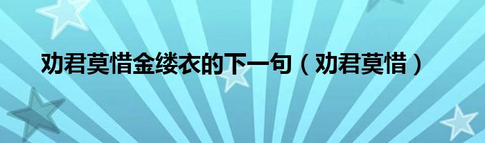 大家好,小飞来为大家解答以上的问题。劝君莫惜金缕衣的下一句,劝君莫惜这个很多人还不知道,现在让我们一起来看看吧!