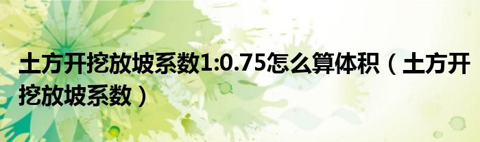 关于土方开挖放坡系数1:0.75怎么算体积,土方开挖放坡系数这个很多人还不知道,今天菲菲来为大家解答以上的问题,现在让我们一起来看看吧!