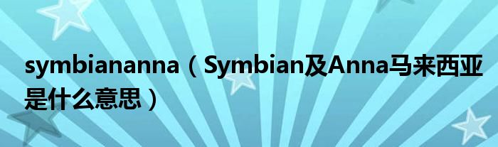 大家好,小常来为大家解答以上问题。symbiananna,Symbian及Anna马来西亚是什么意思很多人还不知道,现在让我们一起来看看吧!