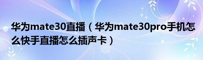 华为mate30直播(华为mate30pro手机怎么快手直播怎么插声卡)