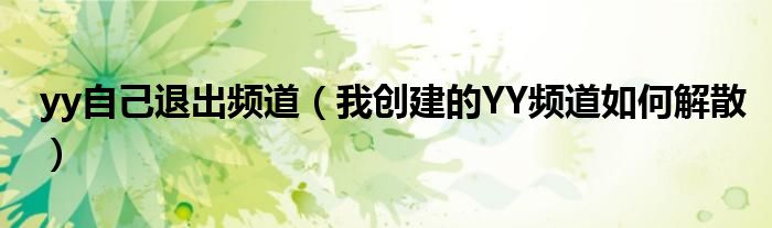 关于yy自己退出频道,我创建的YY频道如何解散这个很多人还不知道,今天菲菲来为大家解答以上的问题,现在让我们一起来看看吧!