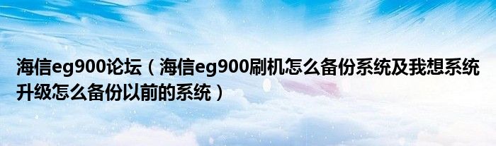 1,海信eg900刷机怎么备份系统 我想系统升级怎么备份以前的系统:要备份整个系统的话,目前最好的方法是刷recovery,用recovery来备份系统,详细过程请到添翼论坛海信eg900版块