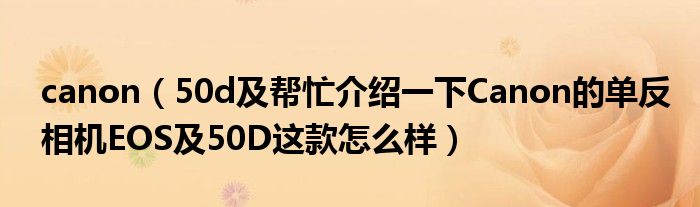 大家好,小常来为大家解答以上问题。canon,50d及帮忙介绍一下Canon的单反相机EOS及50D这款怎么样很多人还不知道,现在让我们一起来看看吧!