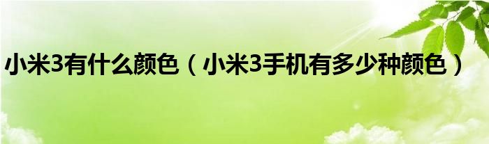 9,小米3有几种颜色可选 :嗨!您好,小米手机3确实支持多色可选,但是具体有哪几种颜色,还没有公布。更多小米3的参数介绍:http://www.xiaomi.com/mi3#design希望可以帮到您。更详细的描述问题有助于网友理解你遇到的麻烦,帮助你更准确的解决问题。谢谢你支持小米手机!
